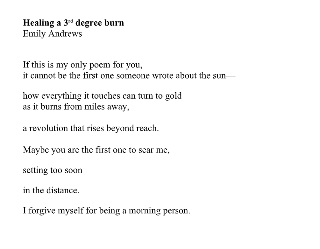 Emily Andrews is a writer from Northern Virginia. She currently writes and edits for Prison Fellowship, a nonprofit serving prisoners and advocating for justice reform. Her writing has appeared in HuffPost, Culture Honey Magazine, and others. Emily is a graduate of the University of Virginia and MFA candidate in creative nonfiction at George Mason University.